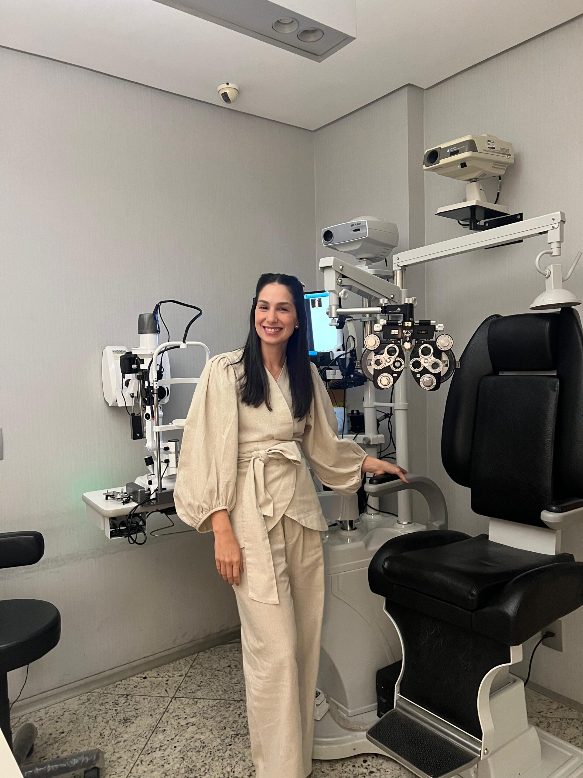 Aos 2 anos fui diagnosticada com um tipo de desvio ocular que corrige parcialmente com uso de óculos, e comecei o uso deste recurso associado a acompanhamento periódico, exercícios e tampão. Aos 4 anos, fui submetida à cirurgia para correção de estrabismo, com excelentes resultados estéticos e funcionais. Segui meu acompanhamento oftalmológico por toda a vida e, na hora de escolher a especialidade, a oftalmologia me escolheu — e me laçou de vez com os olhinhos desalinhados de crianças e adultos que buscavam melhora estética e funcional.